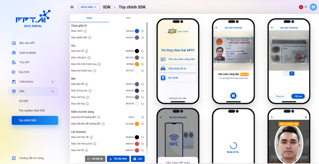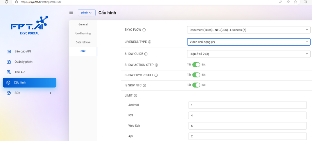 Customers can configure everything themselves on the portal page https://ekyc.fpt.ai/settings?tab=sdk